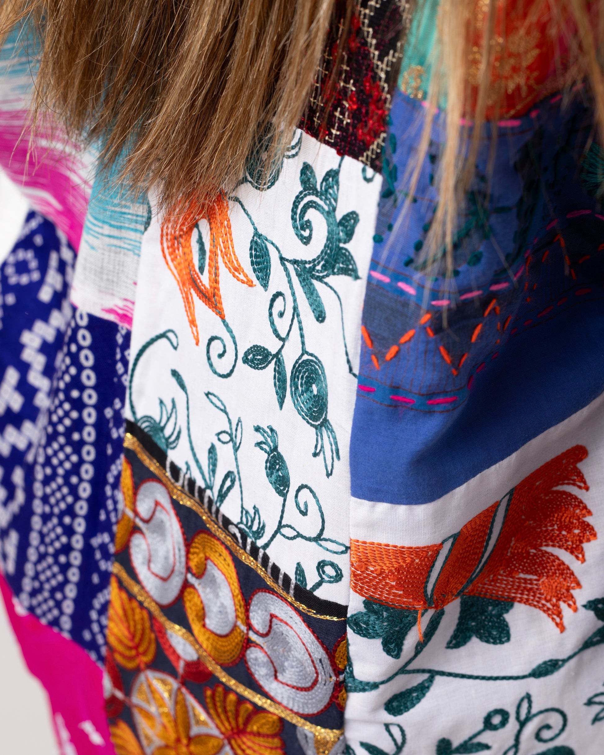 Bahari is spring stitched into fabric — greens, pinks, symbols, and structure. Full of celebration and bloom, she arrives like Nowruz.