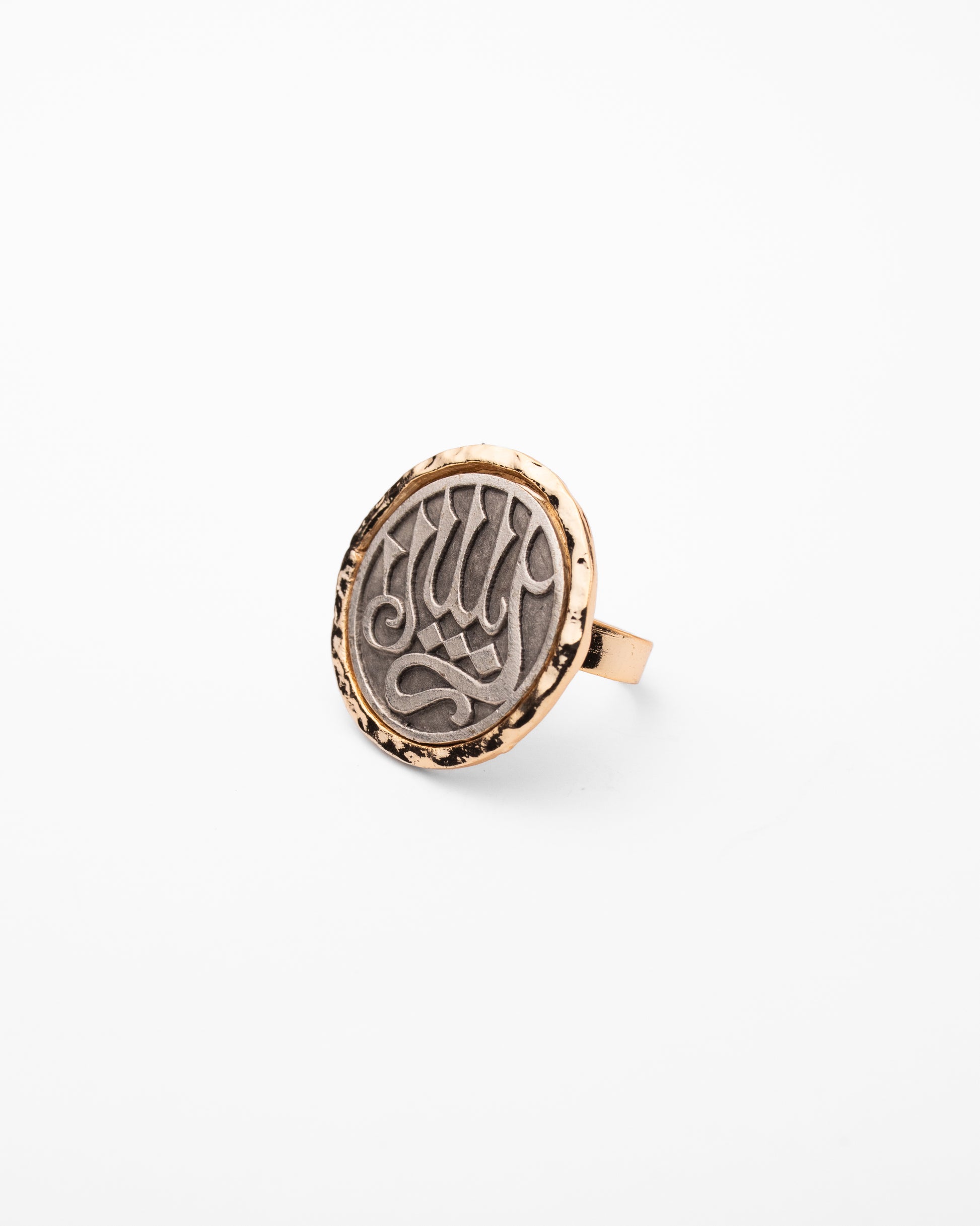 Oval-shaped ring showcasing intricate Persian calligraphy, blending ancient wisdom and modern elegance.