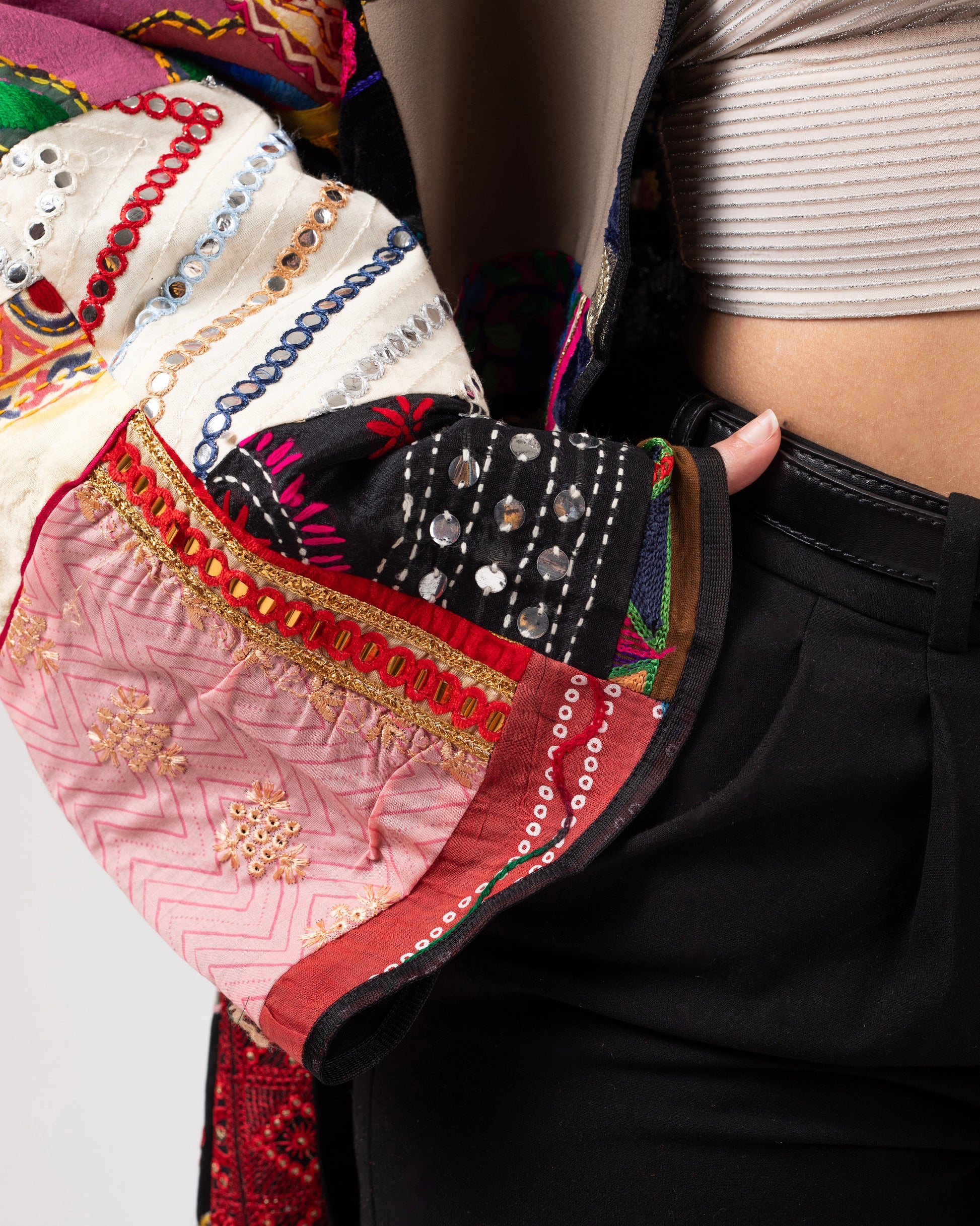 A rich tale of velvet, mirrorwork, and soft geometry — Mahbanoo is elegant chaos made regal. It honors the queenly energy within quiet confidence.