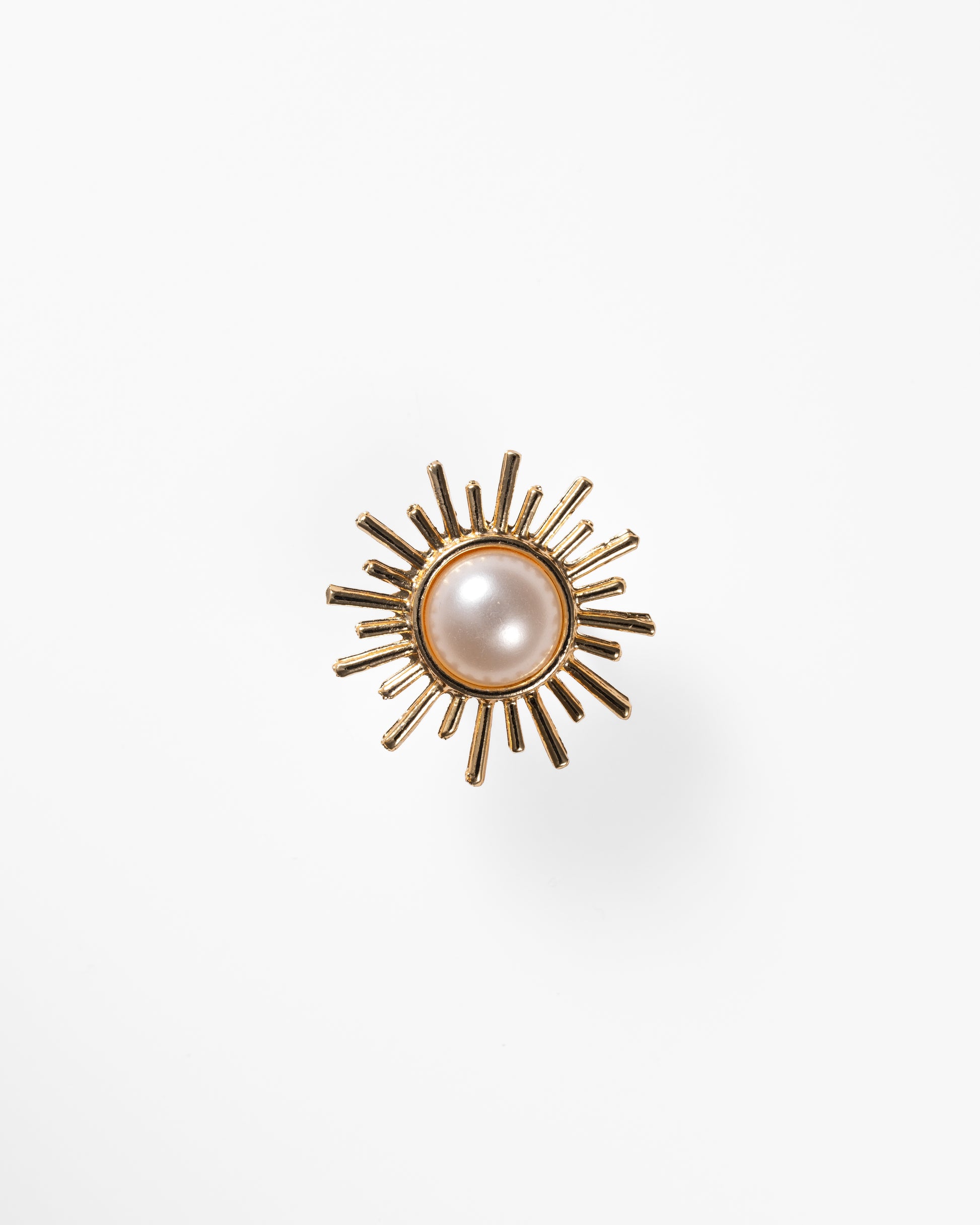 Radiant ring designed as a delicate sunburst, enhanced by a lustrous pearl at its center—perfect for a luminous look.